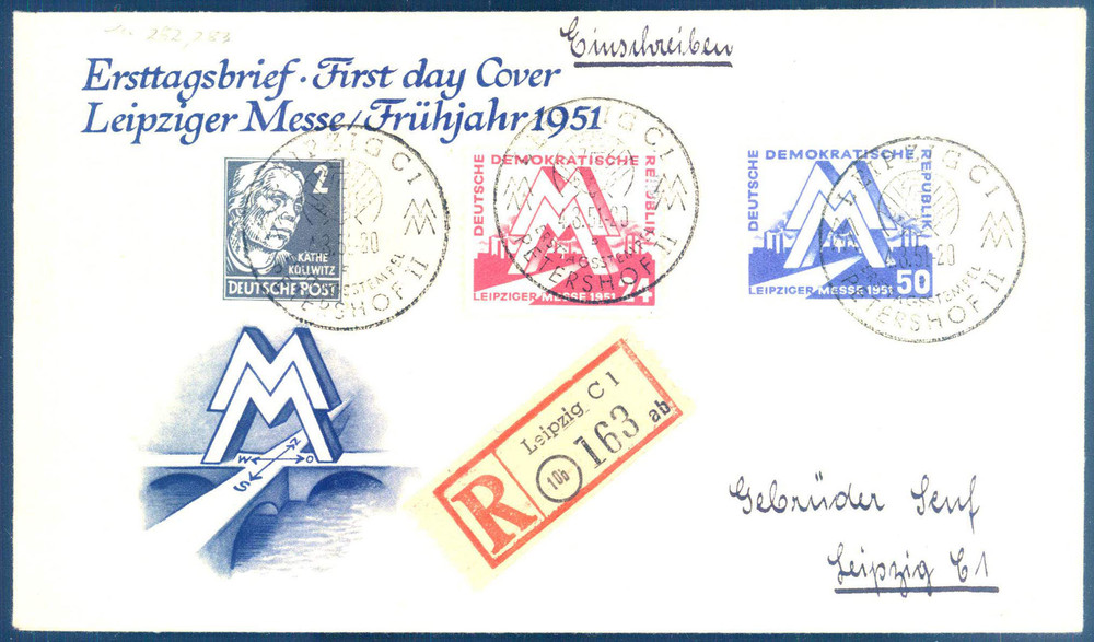 DDR, 1951, Leipziger Messe, Einschreibebrief mit Ersttagsstempel, Details siehe Abbildung.