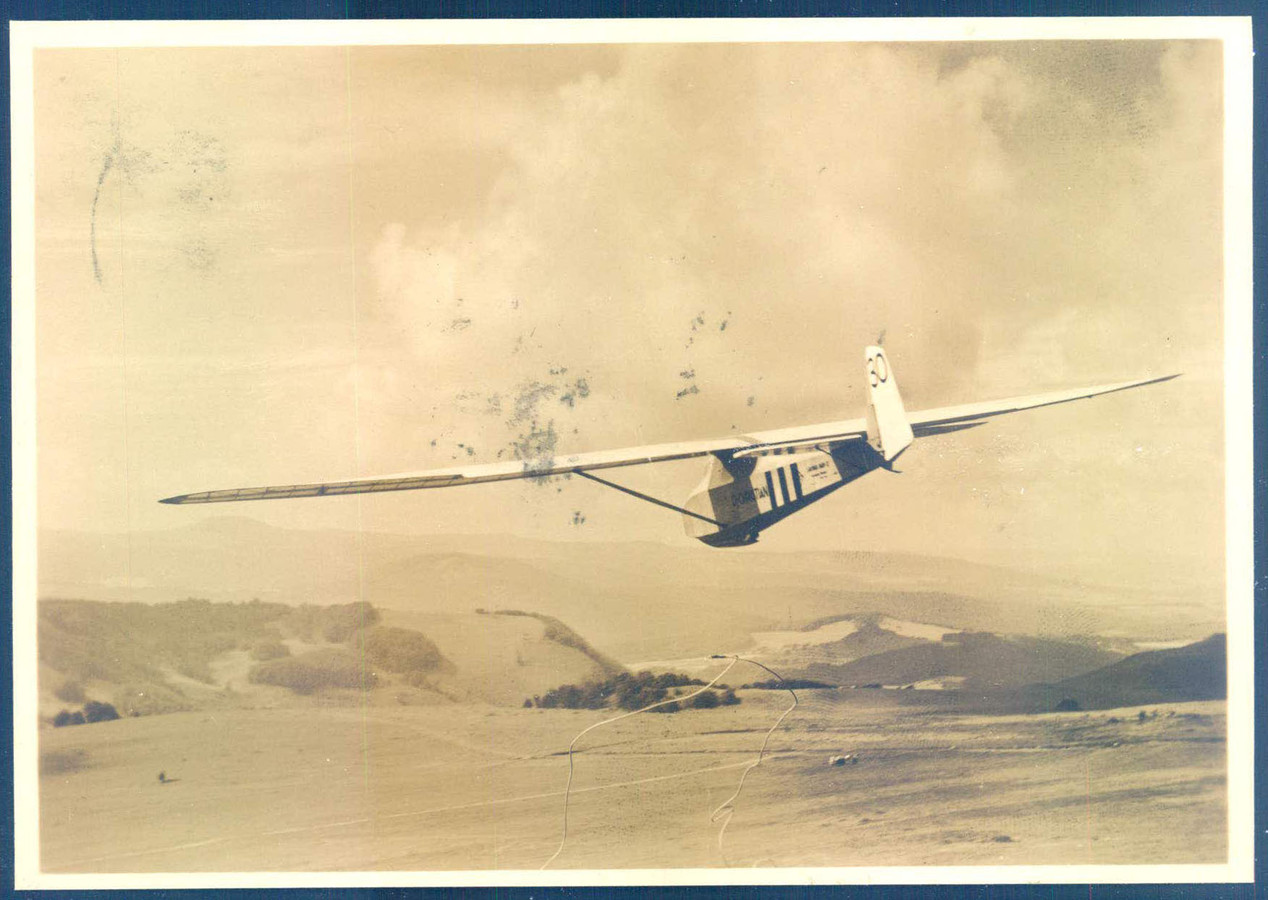 Type "Grunau Baby II", photo postcard, real used, with cancellation "Laucha die Segelfliegerstadt".