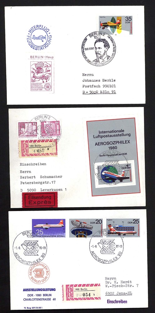Berlin Aerosozphilex 80, lot with 6 letters, details see image.