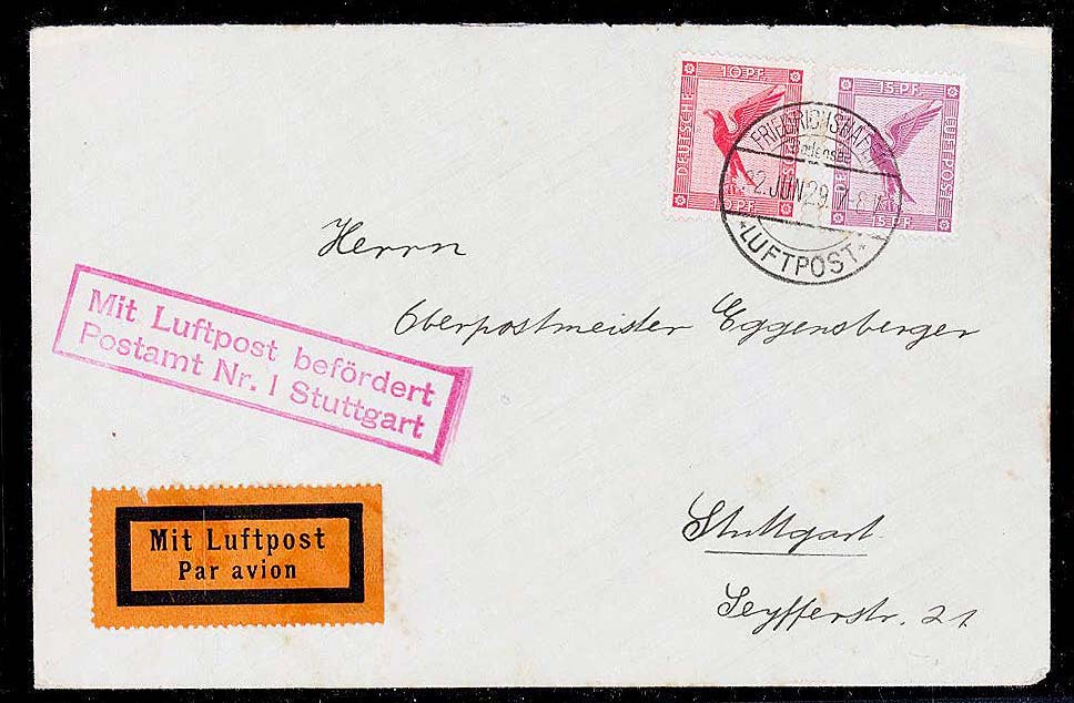 Friedrichshafen 22.6.1929 Brief Erstflug Friedrichshafen-Stuttgart.