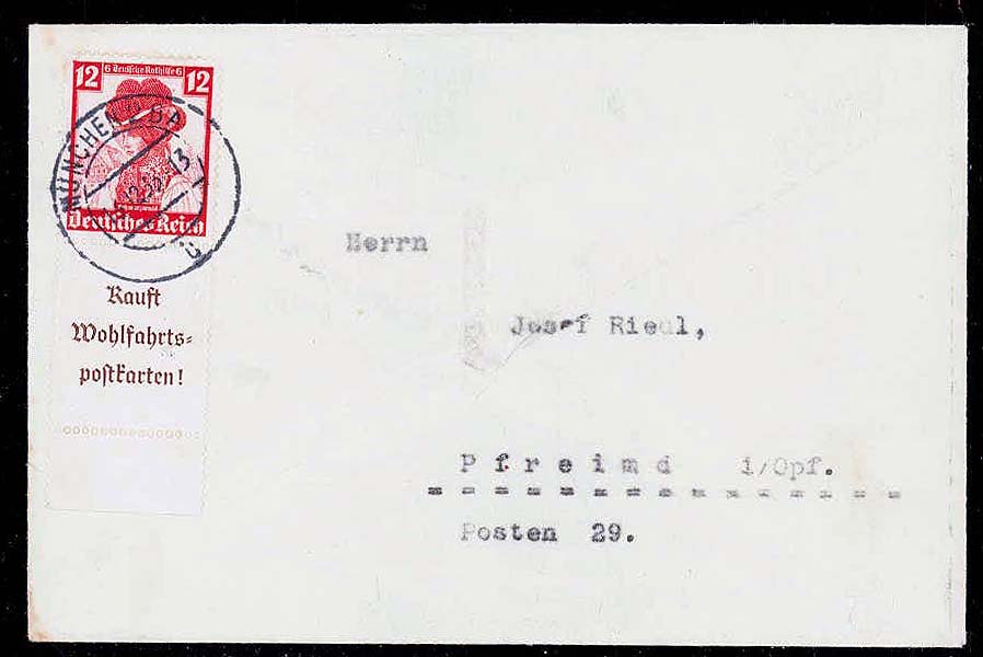 13.12.1935 München, 12Pf Trachten Zusammendruck mit Werbefeld senkrecht auf BEdarfsbrief.
