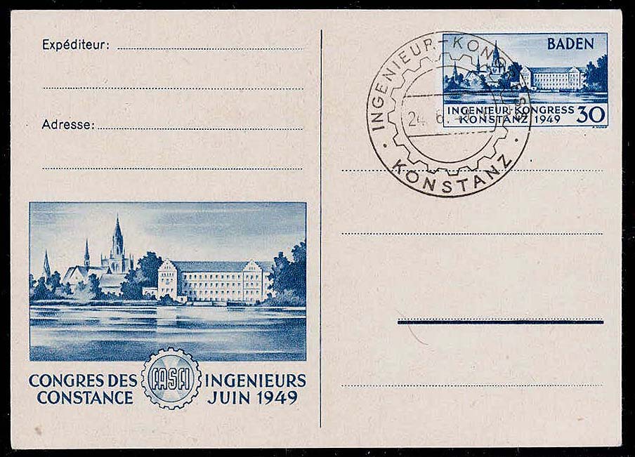 Europäischer Ingenieurkongress Konstanz 1949. Sonderkarte mit Sonderstempel 24.6.1949