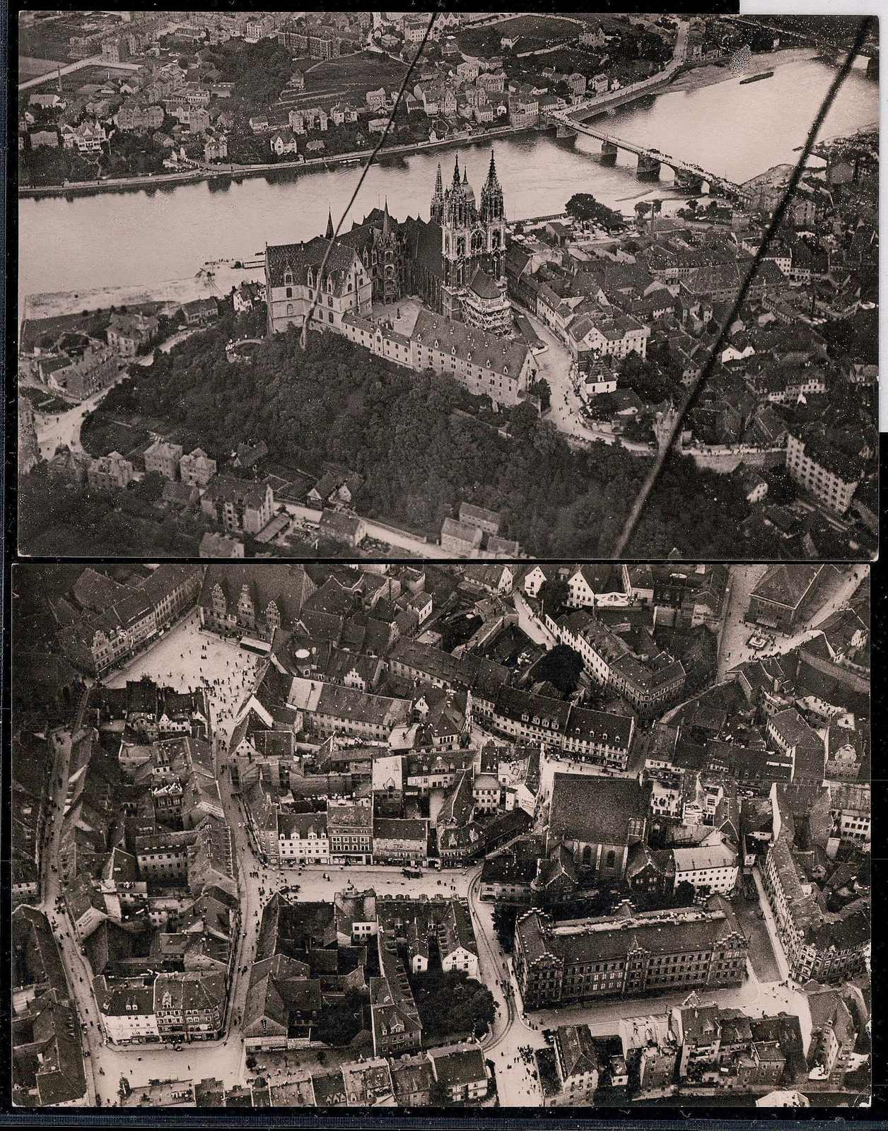 Meissen - 2 Fotopostkarten aufgenommen aus Parseval VI, Originalaufnahmen von Hauptmann Härtel.