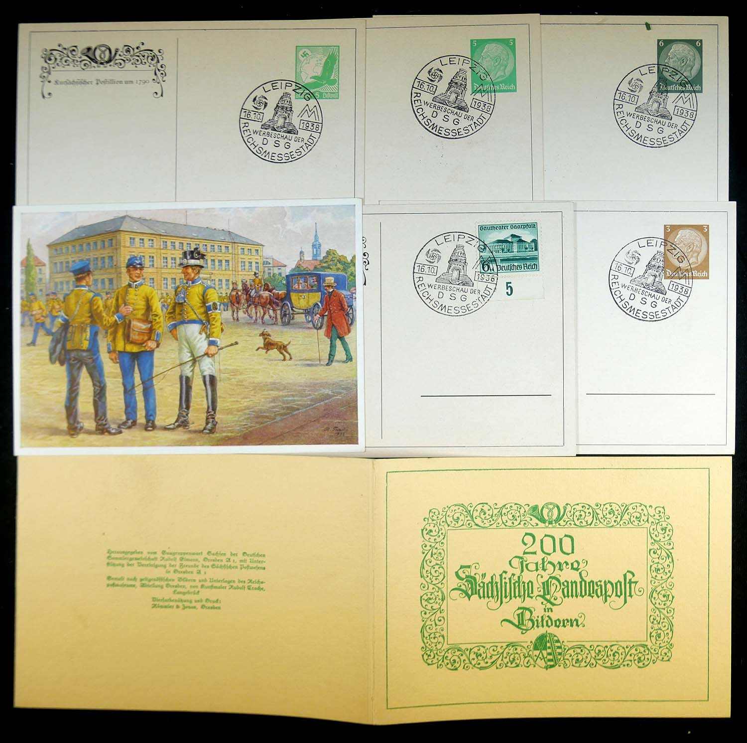 200 Jahre Sächsische Landespost in Bildern, Umschlag mit 6 Postkarten mit Sonderstempel 1938 ( 5 davon Privatganzsachen)