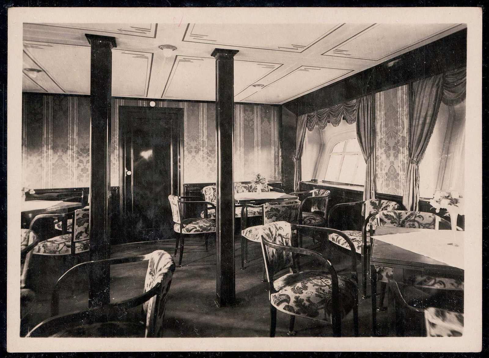 Luftschiff Graf Zeppelin. Foto der Innenansicht des Luftschiffes. (103x142mm). Rückseitig Stempel der Grafischen Abteilung der Luftschiffbau Zeppelin, sowie runder Gummistempel "Graf Zeppelin - Friedrichshafen".