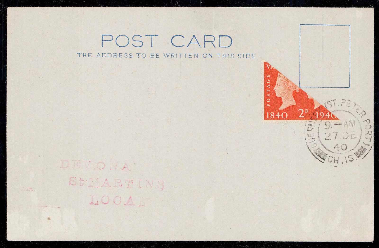 2d Halbierung Großbritannien Michel 218 auf Ersttagskarte mit Stempel Guernsey (St. Peter Port) 27.12.1940.