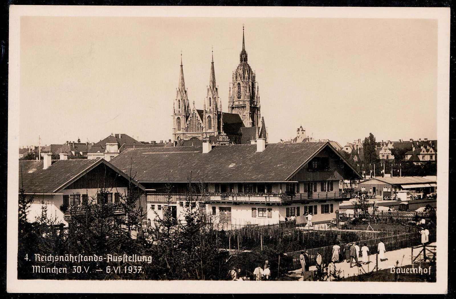 Sonderpostkarte zur 4. Reichsnährstands-Ausstellung / München 30.V. - 6.VI.1937. Echt gelaufen mit passsendem Sonderstempel.