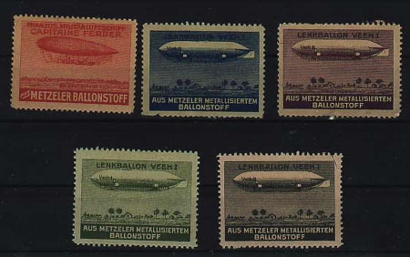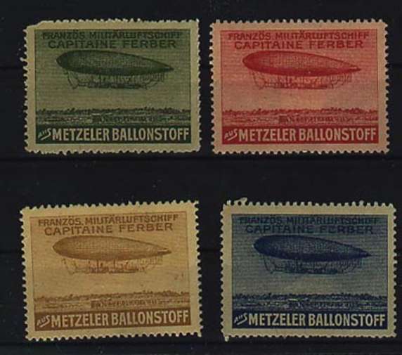 4 Vignetten Militärluftschiff "Capitaine Ferber"