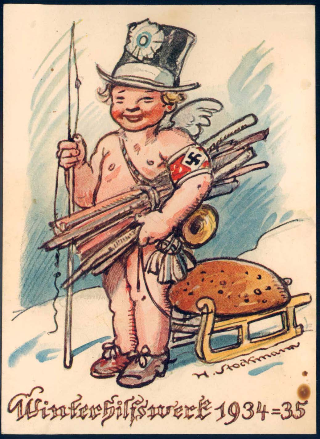 Winter of war aid organisation of the German nation 1934/35, print Deukula, publisher Deutsche Kunst- und Verlagsdruckerei Grassinger & Co., München, Klischee Brend'amour, Simhart & Co., München, used, stained