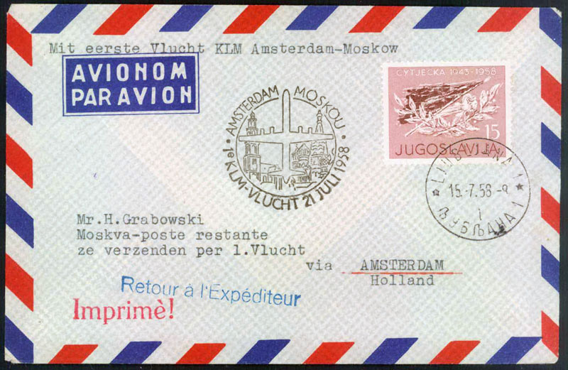 Jugoslawien Ljubijana 15.7.1958 , Zuleitung zum Erstflug der KLM Amsterdam - Moskau