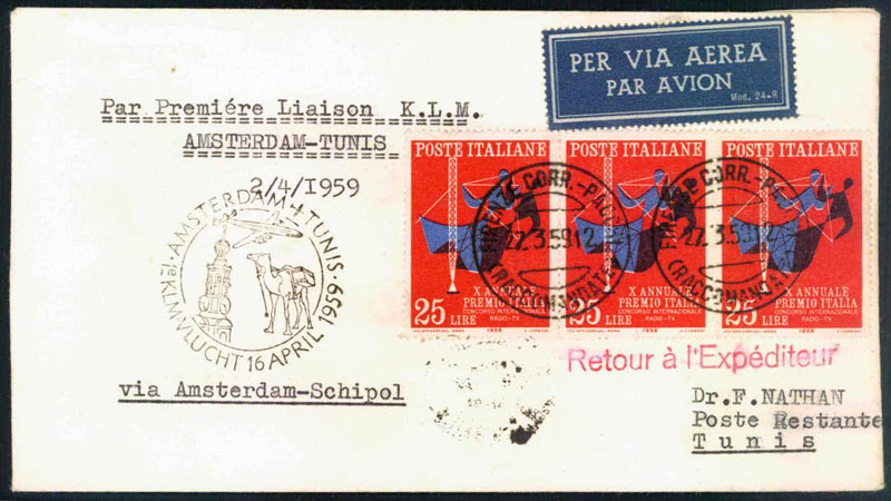 Italien 27.3.1959, Zuleitung zum Erstflug der KLM von Amsterdam nach Tunis am 16.4.1959.