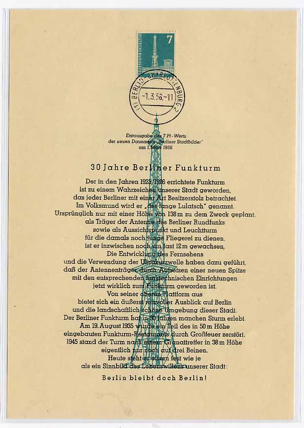 Berlin official first day sheetlet #15 (Michel C.V. 2006: 44 Euro)